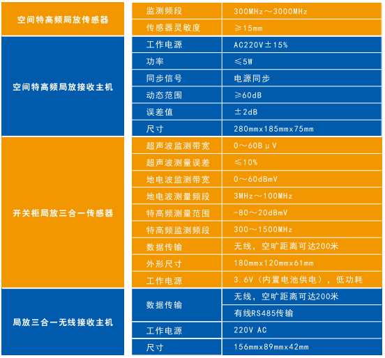 產(chǎn)品由空間特高頻局放傳感器、空間特高頻局放接收主機、開關柜局放三合一傳感器、局放三合一無線接收主機四部分構成。